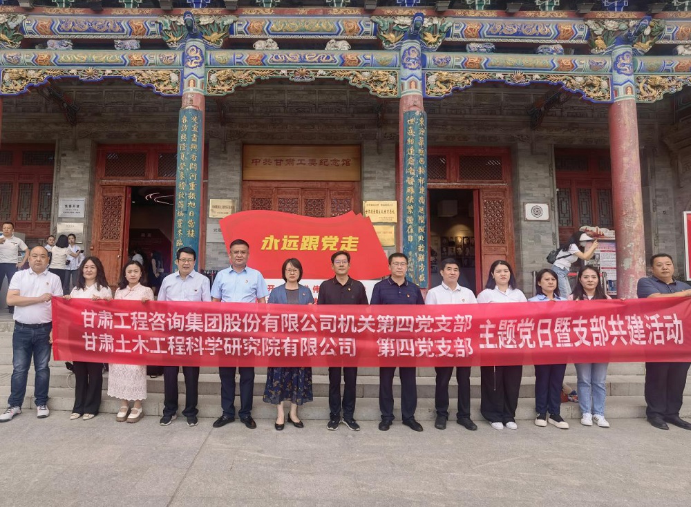 為慶祝中國共產(chǎn)黨成立103周年,7月1日,集團公司機關(guān)第四黨支部與土木工程院第四黨支部赴中共甘肅工委紀(jì)念館開展“七一”主題黨日暨支部共建活動。集團公司黨委副書記、董事王春燕,黨委宣傳部(黨群工作部)部長、機關(guān)黨委副書記丁永升,黨委宣傳部(黨群工作部)副部長、機關(guān)黨委書記金生磊,集團公司機關(guān)第四黨支部黨員,土木工程院黨委書記、監(jiān)事會主席、工會主席張磊,黨委委員、紀(jì)委書記張健,土木工程院第四黨支部部分黨員及發(fā)展對象參加了本次活動。